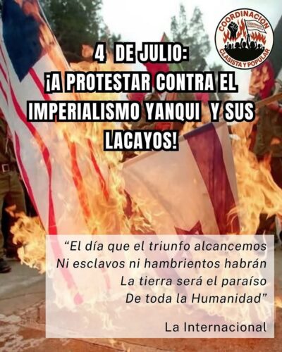 4 DE JULIO: ¡A PROTESTAR CONTRA EL IMPERIALISMO YANQUI Y SUS LACAYOS!